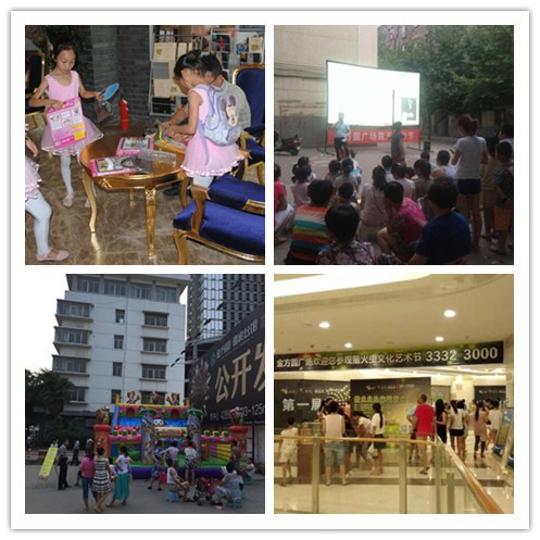 金方圆广场2015年7月10日启动“暑期总动员 全家乐翻天”暑期系列活动,截止到7月25日,7月份进行了“助力暑期娱乐 城堡嘉年华”、金方圆广场第二届露天电影节、丽彩集团童声新主播海选金方圆站、“晒亲子秀 赢青岛游”微信投票互动、回馈粉丝福利免费发放等大大小小6场活动,旨在为孩子们提供一个有意义的愉快的暑假。金方圆广场暑期系列活动得到广大咸阳市民的大力支持,反响甚好。
